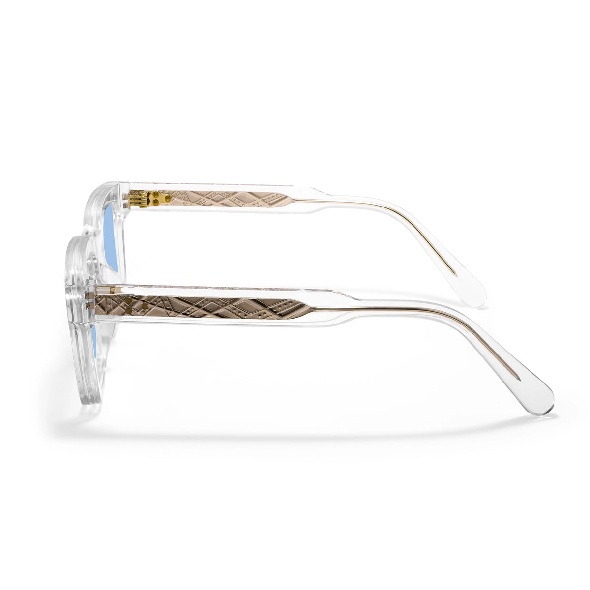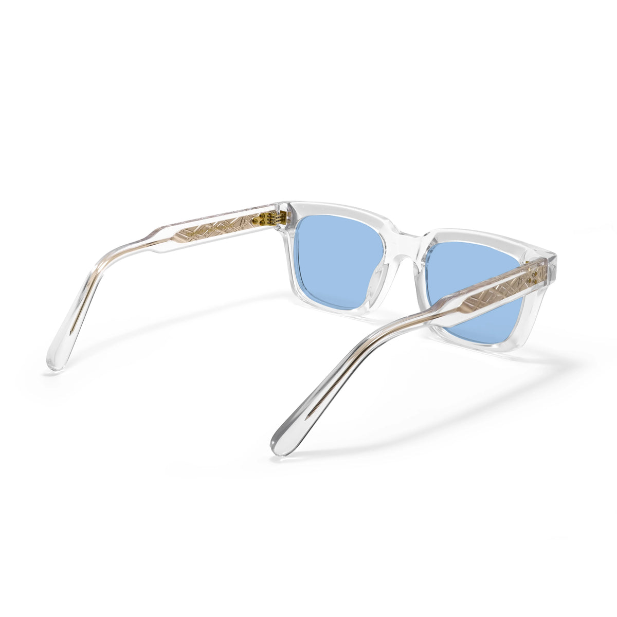 Frame Type: Full Rim Frame Shape: Square Frame Material: Acetate Temple Material: Acetate Frame Color:Clear Lens Color: Blue