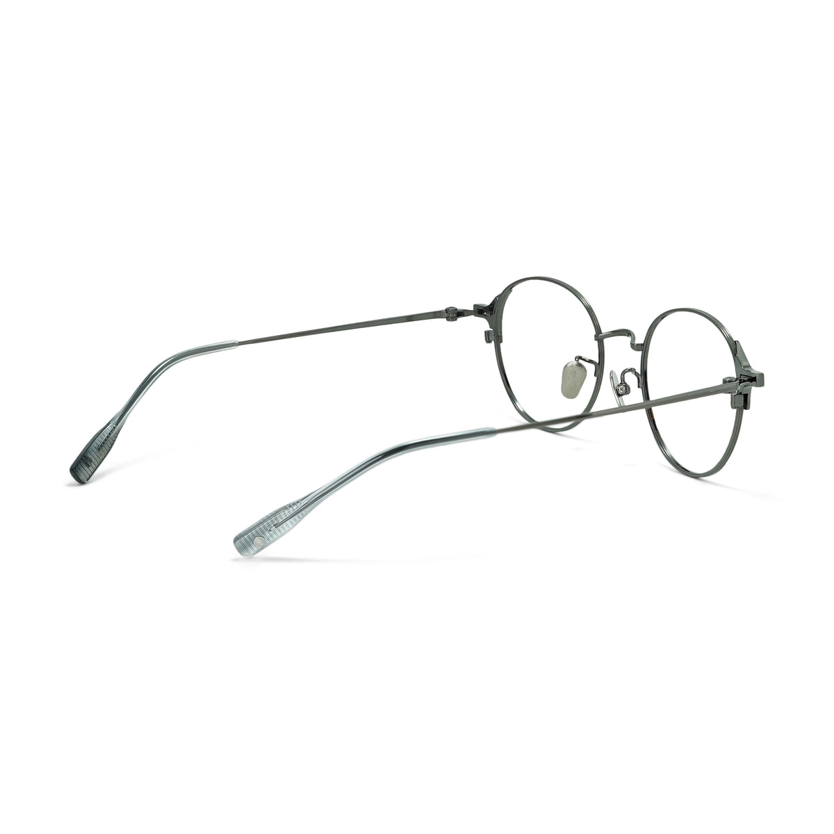 Frame Type: Full Rim Frame Shape: Round Frame Material: Titanium Temple Material: Titanium Frame Color:Gunmetal Lens Color: Clear