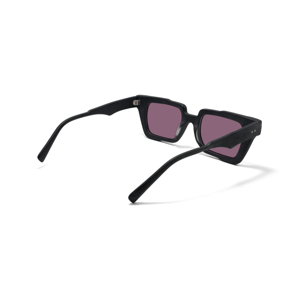 Twilight echoes. The rich black acetate frame pairs with a soft wash of faded grape, blending sophistication with mystery. The purple tint brings depth and a sense of quiet luxury, shifting the rectangular lines into something softer and more intriguing. Put these on when you want to be noticed with an air of subtle allure.